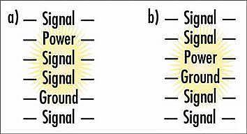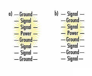 由於信號層和回路層之間總是隔有絕緣層,在10層板設計中分配中間6層來走信號線的方案並非最佳。另外,讓信號層與回路層相鄰很重要,即板布局為信號、地、信號、信號、電源、地、信號、信號、地、信號。