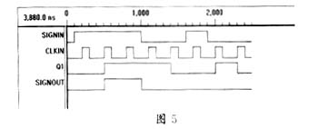 SIGNIN為需處理的信號,被第一個觸發器觸發後,產生延時,同時送入二級觸發器產生二級延時。CLKIN信xin號hao的de頻pin率lv可ke視shi幹gan擾rao源yuan的de寬kuan度du而er定ding,但dan需xu注zhu意yi的de是shi,幹gan擾rao源yuan的de寬kuan度du要yao遠yuan遠yuan小xiao於yu信xin號hao源yuan的de寬kuan度du,否fou則ze信xin號hao寬kuan度du將jiang被bei大da幅fu削xue減jian,導dao致zhi特te性xing被bei破po壞huai。電dian路lu仿fang真zhen波bo形xing如ru圖tu5所示。