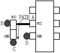 如圖8(b)所示,將過孔B放在電容電源管腳和芯片電源管腳之間,這樣將增加通路A的環路電感,當電容和芯片不是位於同一層時,一般采用這種方式。