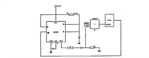 采用單穩態觸發器NE555作為微機看門狗電路;當係統工作正常時,看門狗電路不起作用,當係統運行不正常時,80C51的P1.1引腳不能給定時器送去觸發脈衝,這時NE555中單穩態觸發器就輸出脈寬大於4US負脈衝,經F6反相後加至80C51的複位端,使係統可靠的複位,這樣可防止因外界幹擾引起的程序跑飛,使微機程序正常運行,見圖1。