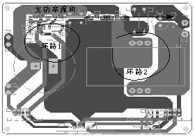 對於元器件的放置,由於開關電源的輻射幹擾(E)與電流通路中電流(I)的大小,通路的環路麵積(A),以及電流頻率(f)的平方等三者的乘積成正比,即E=I·A·f2。運用這一關係的前提是通路尺寸遠小於頻率的波長(此電路符合條件)。