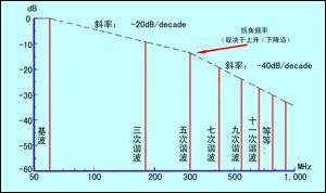 圖1 上升/下降時間為1ns的理想60MHz方波的頻譜