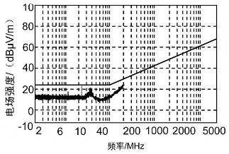 對RE102 試驗項目進行觀察,發現測試結果圖的超標點為24 MHz、36 MHz 兩點,而這兩點分別是12 MHz 頻率點的二三次諧波。為了找到這一頻率點的元器件,對機箱內各單元進行了分析,發現控製保護單元中有一個12MHz 晶jing振zhen,由you於yu晶jing振zhen屬shu於yu高gao噪zao聲sheng元yuan器qi件jian,能neng夠gou產chan生sheng較jiao強qiang的de輻fu射she,從cong而er使shi其qi周zhou邊bian充chong滿man著zhe近jin場chang輻fu射she場chang。如ru果guo輻fu射she場chang內nei有you器qi件jian或huo走zou線xian,晶jing振zhen及ji其qi諧xie波bo信xin號hao將jiang耦ou合he到dao器qi件jian或huo走zou線xian上shang而er輻fu射she出chu去qu;再者又發現控製保護單元的PCB banweicaiqujiujinjiedicuoshi,zhishitongguoyigenchangyinxianhejikedixianglian,zaochengxinhaodehuanlumianjizengda,chanshenglehenqiangdefushe,suoyiduikongzhibaohudanyuancaiqucuoshiyinggaishixingzhiyouxiaode。shouxianduijingzhenjinxingpingbiqiepingbitijiujinjiedi,ruohuafushefasheqiangdu; 然後控製保護單元的PCB 板同樣采取就近接地措施,並且在屏蔽盒出口處的信號線上安裝一個鐵氧體磁環,可以將不需要的高頻幹擾抑製掉。通過采取以上措施後,RE102 試驗指標合格,如圖3 所示。