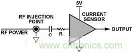 具體而言,這些測試都采用 “直接功率注入法”完成,這是一種通過電容將RF信號耦合至特定器件引腳的方法。根據待測IC的類型,針對不同的RF信號功率水平和頻率範圍,測試器件的每路輸入。圖4顯示了在特定引腳上執行直接功率注入測試的原理示意圖。