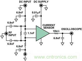 這兩種器件都在完全相同的條件下進行測試。唯一不同就是AD8208在輸入引腳和電源引腳上都配有內部低通RF輸入濾波器。在芯片上增添這樣的部件似乎微不足道,但是由於應用通常由PWM進行控製,這種情況下電流檢測放大器必須能夠承受最高45 V的連續開關共模電壓。因此,要保持精確的高增益和共模抑製性能,輸入濾波器必須嚴格匹配。