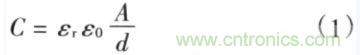 式(1)顯示,減小電容器極板之間的距離(d)和增加極板的截麵積(A)將增加電容器的電容量。電容通常存在等效串聯電阻(ESR)和等效串聯電感(ESL)二個寄生參數。