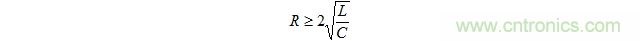 為消除來自脈衝波形(如數字信號)的正脈衝信號、負脈衝信號或振鈴,使用滿足以下公式的電阻器來實現LCR串聯諧振電路的無振蕩條件。