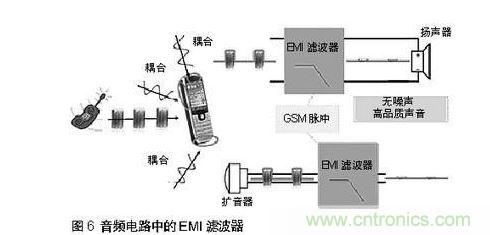 在音頻電路中如有電磁幹擾(EMI),會出現嘶嘶、劈啪、嗡嗡等聲音,聲音質量很差。手機用戶無法忍受這樣的幹擾。因此,必須設法過濾音頻電路的電磁幹擾。