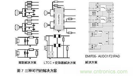 EMI濾波器盡可能地接近EMI幹擾的切入點,這樣盡可能保證音頻質量。如圖6。