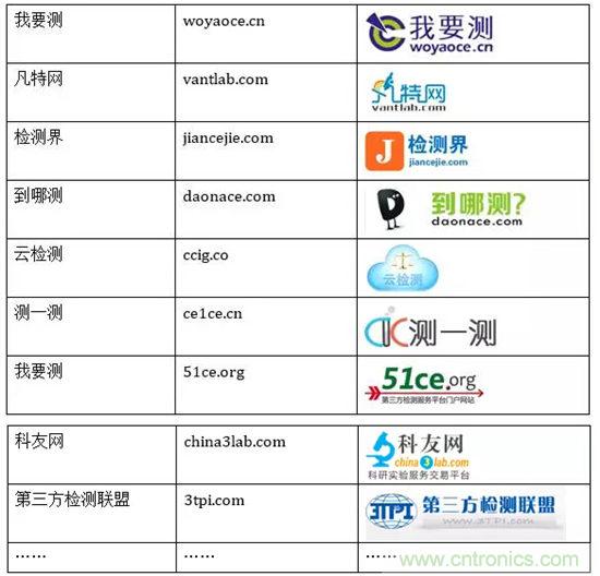 我要測(woyaoce.cn)、凡特網(vantlab.com)、檢測界(jiancejie.com)、到哪測(daonace.com)、雲檢測(ccig.co)、測一測(ce1ce.cn)、我要測(51ce.org)、科友網(china3lab.com)、第三方檢測聯盟(3tpi.com)……
