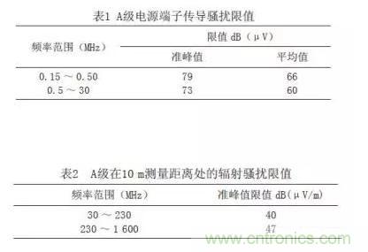 根據鐵路客運專線標準規定,傳導騷擾限值和輻射騷擾限值如表1、2所示。