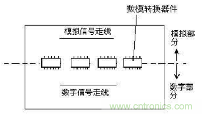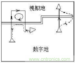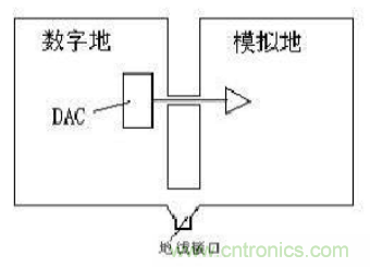 jiedijishuzhonghaiyouyigehenzhongyaodebufenjiushishuzidianluyumonidianludegongdichuli。yibanshuolai,shuzidianludepinlvgao,ermonidianludeduizaoshengdeminganduqiang,zhengyinweiruci,gaopindeshuzixinhaoxianyaojinkenengyuanlimingandemonidianluqijian,tongyang,bicidexinhaohuiluyeyaoxianghugeli,zhejiuqianshedaomoniheshuzididehuafenwenti。yibandezuofashi,monidiheshuzidifenli,zhizaimouyidianlianjie,zheyidiantongchangshizaiPCB板總的地線接口處,或者在數模轉換器的下方,必要時可以使用磁性元件(如磁珠)連接,如圖所示。