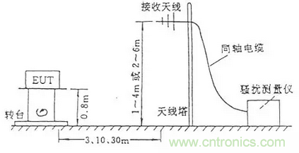標準要求測試在開闊場地或半電波暗室內進行,場地必須符合NSA(歸一化場地衰減)的要求。測試布置如圖1所示。