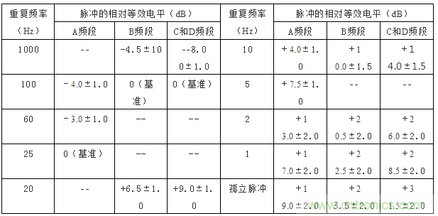 表3:騷擾測量儀的絕對脈衝特性