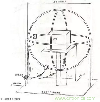 輻射發射測試時,測量天線接收到的騷擾強場包括兩個部分,一部分是EUT內部的導線和電路直接通過機箱殼體的縫隙向外的輻射,稱殼體輻射,另一部分是由外接電纜引出的共模電流輻射。替代法測試的目的是僅僅測試EUT的殼體輻射,所以要求拆除所有可以拆卸的電纜,不能拆卸的電纜上要加鐵氧體磁環,並放在不會影響測量結果的位置上。