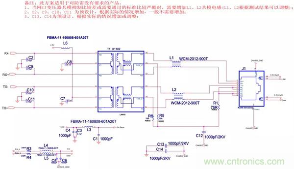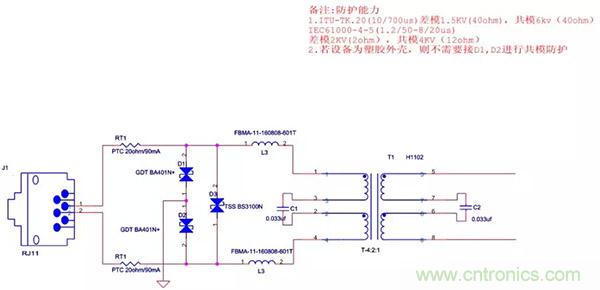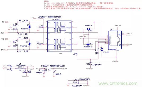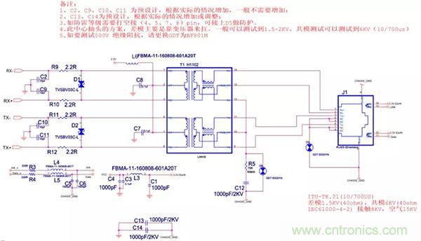 30、以太網EMC(浪湧)設計標準電路(差模要求較高方案)