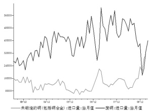 我國銅分月進口量(噸) 數據來源:Wind資訊