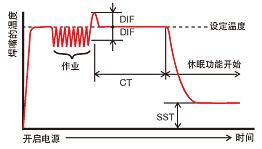 一定時間不使用,焊嘴將自動的降溫(時間和溫度可自由設定),減輕焊嘴的因空燃燒導致的焊嘴氧化。也可以和「自動關機功能」一起並用。