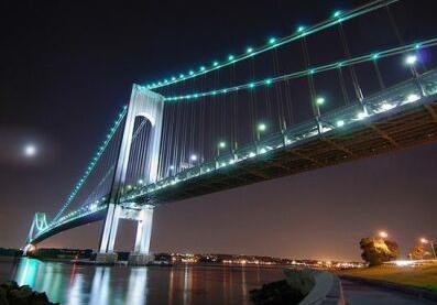 美國紐約被高亮度LED照明的大橋.