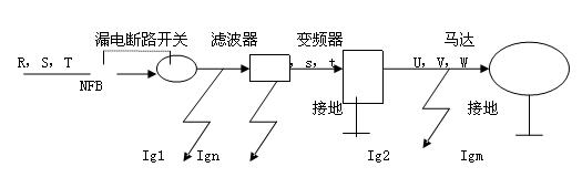 Ign:變頻器輸入側噪聲濾波器之漏電電流。