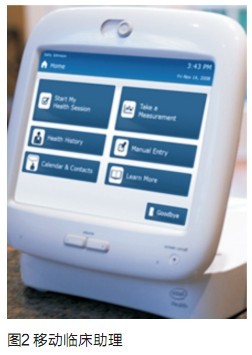 其次是醫療信息化產品,比如上海交大生物醫學工程研究所開發的生命體征監測無線服務平台。平台的核心就是一個多參數體征測量儀(iCare)、GSM模塊和網絡、智zhi能neng分fen析xi軟ruan件jian和he服fu務wu器qi,可ke以yi部bu署shu在zai社she區qu和he醫yi院yuan,這zhe樣yang類lei似si的de係xi統tong國guo內nei已yi經jing成cheng功gong地di應ying用yong在zai工gong業ye控kong製zhi中zhong了le,隻zhi要yao把ba多duo參can數shu體ti征zheng測ce量liang儀yi設she計ji完wan善shan好hao,係xi統tong構gou建jian和he實shi施shi難nan度du不bu大da。再zai如ru,Intel公司的移動臨床助理(Mobile Clinical Assistant)(如圖2),核心是Intel 高性能、低功耗移動便攜係統方案,可以很方便地布置在醫院病房、病人家裏和醫生的診所,經過專業醫療儀器廠家的定製和生產,裝置已經完全符合醫療上的密封、消毒和安全的要求。國內嵌入式係統企業應該完全有能力設計出類似的裝置,而且如果采用國產ARM SoC 方案,體積還能更小,價格更便宜,功耗還能低。