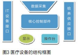 前麵談了許多關於國內嵌入式企業在發展醫療電子產品上的優勢,但是,我們必須清醒地看到醫療電子產品(或者稱為有源的醫療設備)設計的特殊性。一般來講,醫療設備由下麵幾個部分組成:電子控製部分、顯示和操作台、給養供應和數據采集、以及其他設備接口(包括IT等),如圖3。每個部分都可能有獨立的MCU或者ASIC/FPGA,甚至是高性能的嵌入式計算機組成的多處理器係統。軟件研發的費用在現代醫療設備研發費用中所占的比重已經超過50%,未來還會增加。醫療設備的特殊性體現在下麵幾個方麵:
