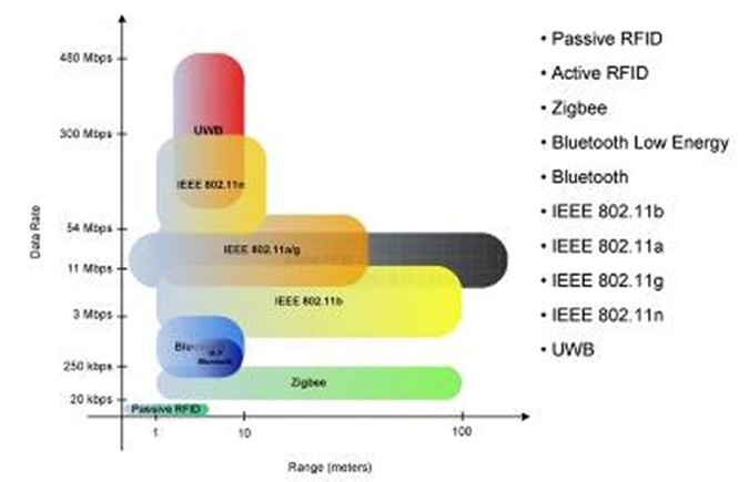 當選擇無線接口時,功耗、數據速率和數據範圍是其中需要考慮到的三個關鍵因素(參見圖2)。以ZigBee為例,該協議可以在全球範圍使用;數據速率和占空比適中;支持無線網狀網絡,允許同一係統中存在多個傳感器。藍牙和藍牙低功耗(BLE)協議所提供的範圍雖有所限製,但數據速率更高。BLE在傳感器端具有更低的功耗,從而允許使用相對傳統藍牙而言外形更小的電池。