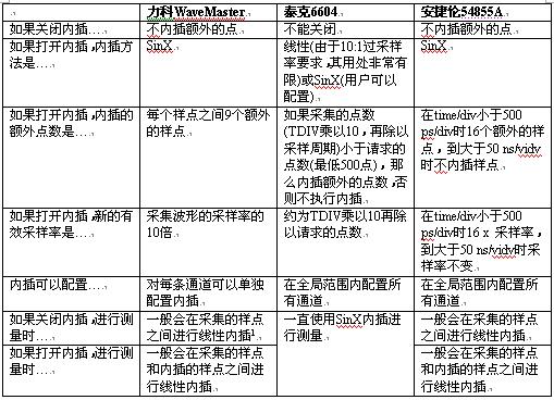 有(you)一(yi)種(zhong)簡(jian)單(dan)的(de)方(fang)法(fa),確(que)定(ding)采(cai)用(yong)的(de)內(nei)插(cha)策(ce)略(lve)的(de)有(you)效(xiao)性(xing)。在(zai)不(bu)同(tong)示(shi)波(bo)器(qi)廠(chang)商(shang)之(zhi)間(jian),示(shi)波(bo)器(qi)的(de)內(nei)插(cha)性(xing)能(neng)差(cha)異(yi)很(hen)大(da)。在(zai)各(ge)種(zhong)示(shi)波(bo)器(qi)運(yun)行(xing)條(tiao)件(jian)下(xia),示(shi)波(bo)器(qi)在(zai)什(shen)麼(me)時(shi)候(hou)執(zhi)行(xing)內(nei)插(cha)及(ji)內(nei)插(cha)效(xiao)果(guo)有(you)著(zhe)很(hen)大(da)的(de)差(cha)異(yi)。