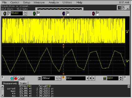 簡(jian)單(dan)地(di)設(she)置(zhi)示(shi)波(bo)器(qi),重(zhong)複(fu)觸(chu)發(fa)波(bo)形(xing),建(jian)立(li)波(bo)形(xing)的(de)餘(yu)輝(hui)地(di)圖(tu),保(bao)證(zheng)波(bo)形(xing)是(shi)重(zhong)複(fu)的(de)。在(zai)這(zhe)一(yi)步(bu)時(shi)一(yi)定(ding)要(yao)關(guan)閉(bi)內(nei)插(cha)。如(ru)果(guo)波(bo)形(xing)是(shi)重(zhong)複(fu)的(de),它(ta)將(jiang)建(jian)立(li)一(yi)張(zhang)很(hen)緊(jin)的(de)餘(yu)輝(hui)地(di)圖(tu)。然(ran)後(hou),在(zai)確(que)定(ding)了(le)重(zhong)複(fu)性(xing)之(zhi)後(hou),您(nin)需(xu)要(yao)高(gao)效(xiao)的(de)采(cai)樣(yang)率(lv),作(zuo)為(wei)參(can)考(kao)給(gei)出(chu)波(bo)形(xing)。大(da)多(duo)數(shu)高(gao)端(duan)DSO提供了一種等效時間模式(力科示波器上稱為RIS),可以使用這種模式采集參考曲線。力科DSOhaitigongleyizhongchulihanshu,chengweiyuhuiquxianzhongjianzhi,tacongyuhuidituzhongtiquzhongjianboxing。baocuncankaoboxing,yibeiyihoubijiao。ruguobunengquedingzenyangbaocuncankaoboxing,keyidayinyuhuishitu,yijinxingbijiao。