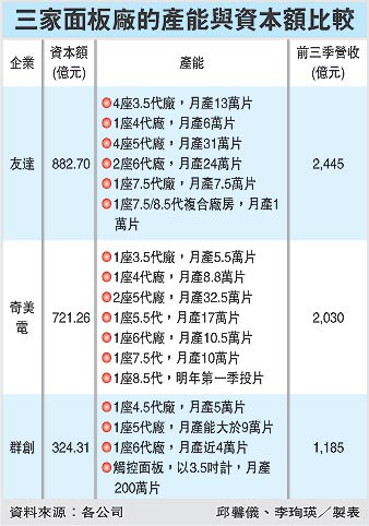 台灣三家麵板廠產能與資本額比較