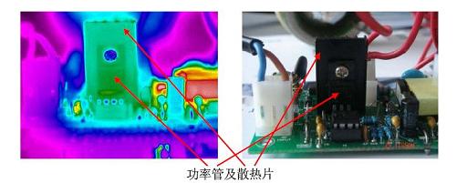 大的器件,所以必須加裝散熱片使其長期穩定工作溫度不超過120℃;在zai拍pai攝she熱re圖tu時shi,散san熱re片pian是shi鋁lv合he金jin材cai料liao經jing過guo發fa黑hei處chu理li,其qi表biao麵mian雖sui然ran為wei黑hei色se但dan其qi發fa射she率lv還hai是shi較jiao低di,建jian議yi用yong油you漆qi筆bi塗tu黑hei後hou進jin行xing檢jian測ce,或huo在zai溫wen度du穩wen定ding一yi段duan時shi間jian後hou直zhi接jie測ce量liang功gong率lv管guan的de溫wen度du。