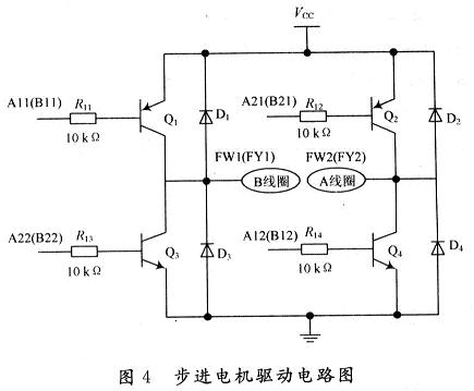 步進電動機是一種用電脈衝信號進行控製,並將電脈衝信號轉換成相應角位移的執行器。在跟蹤係統中,以74HC240的16個輸出信號作為步進電機驅動器的輸入控製信號,用以控製步進電機俯仰方向和水平方位的正反轉。圖4所示的是步進電機一路驅動電路圖,係統共有四路驅動電路,分別驅動步進電機俯仰方向和水平方位的正反轉。