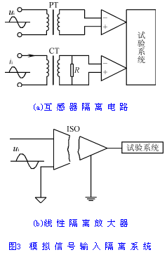一yi套tao控kong製zhi裝zhuang置zhi或huo者zhe一yi台tai電dian子zi電dian氣qi設she備bei,通tong常chang包bao含han供gong電dian係xi統tong,模mo擬ni信xin號hao測ce量liang係xi統tong,模mo擬ni信xin號hao控kong製zhi係xi統tong。而er供gong電dian係xi統tong又you可ke分fen為wei交jiao流liu供gong電dian係xi統tong和he直zhi流liu供gong電dian係xi統tong,交jiao流liu供gong電dian係xi統tong主zhu要yao采cai用yong變bian壓ya器qi隔ge離li,直zhi流liu供gong電dian係xi統tong主zhu要yao采cai用yong直zhi流liu電dian壓ya隔ge離li器qi隔ge離li。模mo擬ni信xin號hao測ce量liang係xi統tong相xiang對dui來lai說shuo比bi較jiao複fu雜za,既ji要yao考kao慮lv其qi精jing度du,頻pin帶dai寬kuan度du的de因yin素su,又you要yao考kao慮lv其qi價jia格ge因yin素su;對於高電壓、大電流信號,一般采用互感器(電壓互感器、電流互感器)隔離法,近年來,又出現了霍爾變送器,這些元器件都是高電壓、大電流信號測量常規使用的元器件;對於微電壓、微電流信號,一般采用線性隔離放大器。模擬信號控製係統與模擬信號測量係統的隔離類似,一般采用變壓器、直流電壓隔離器。