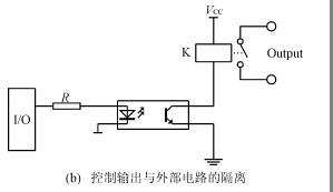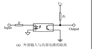 這種隔離方法是用光電耦合器把輸入信號與內部電路隔離開來,或者是把內部輸出信號與外部電路隔離開來,如圖4(a)、(b)所示。