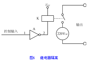 繼電器是常用的數字輸出隔離元件,用繼電器作為隔離元件簡單實用,價格低廉。圖6是shi繼ji電dian器qi輸shu出chu隔ge離li的de實shi例li示shi意yi圖tu。在zai該gai電dian路lu中zhong,通tong過guo繼ji電dian器qi把ba低di壓ya直zhi流liu與yu高gao壓ya交jiao流liu隔ge離li開kai來lai,使shi高gao壓ya交jiao流liu側ce的de幹gan擾rao無wu法fa進jin入ru低di壓ya直zhi流liu側ce。