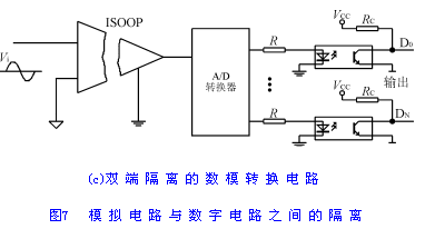 模擬電路與數字電路之間的隔離主要采用模/數轉換裝置;對於要求較高的電路,除采用模/數轉換裝置外,還應在模/數轉換裝置的兩端分別加入模擬隔離元器件和數字隔離元器件。