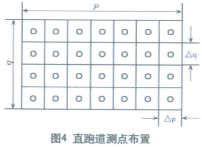 1) 四點法:把同一側兩燈柱間的測量路段分成若幹個大小相等的矩形網格,把測點設置在每個矩形網格的四角,圖7為四點法布點時的測點布置圖。