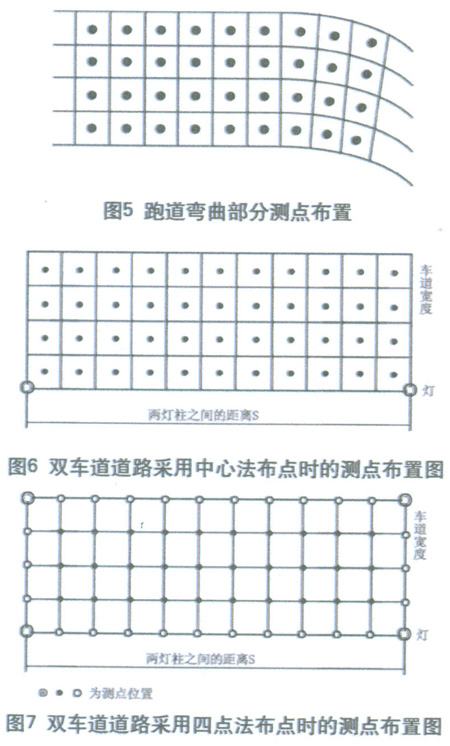 照度測量的範圍,在縱方向(沿道路走向)應包括同一側的兩個燈杆之間的區域;而在橫方向,單側布燈時應為整個路寬;雙側交錯布燈、對稱布燈或中心布燈時可為1/2路寬。