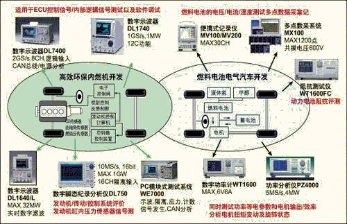 本文針對汽車研發過程中所涉及到的發動機分析、驅動分析、振動分析、環境影響、燃料電池效率分析、CAN總線分析等方麵,介紹橫河電機提供的各種測試解決方案(圖1)。