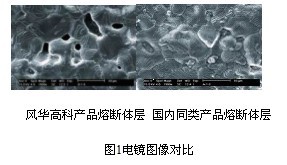 從電鏡圖像對比可見,風華高科產品熔斷體層致密性較好,保險絲有較好的熔斷特性。電子元器件行業正在朝著高頻化、片式化、微型化、薄型化、低功耗、響應速率快、高分辨率、高功率、多功能、模(mo)塊(kuai)化(hua)和(he)智(zhi)能(neng)化(hua)等(deng)方(fang)向(xiang)發(fa)展(zhan),正(zheng)進(jin)入(ru)以(yi)新(xin)型(xing)電(dian)子(zi)元(yuan)器(qi)件(jian)為(wei)主(zhu)體(ti)的(de)新(xin)一(yi)代(dai)元(yuan)器(qi)件(jian)時(shi)代(dai)。產(chan)品(pin)的(de)安(an)全(quan)性(xing)和(he)綠(lv)色(se)化(hua)也(ye)將(jiang)成(cheng)為(wei)影(ying)響(xiang)電(dian)子(zi)元(yuan)器(qi)件(jian)發(fa)展(zhan)前(qian)途(tu)的(de)重(zhong)要(yao)因(yin)素(su)。