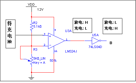 ①運用電壓比較器監測電池電壓,保證至充電終止電壓時,能及時關斷充電電流並鎖定“充電結束”狀態。
