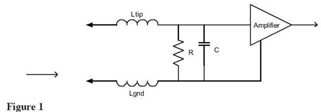 差分探頭包括兩個獨立的輸入端子和一個差分放大器,如Figure 2所示。因為有源電路隻放大兩個輸入,公共地連接還有相關的電感被去除。剩下的電感是兩個尖端電感的和,但是由於Ltip通常遠小於Lgnd,fuzaidianganbiandehenxiao。jianduandianganyeshigudingde,buyilaiyurenheyinbutongyonghuergaibiandedijia。ciwai,dianrongjianban,yinweifuzaidianrongheyuanyoudeshurudianrongchuanlian。