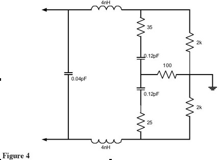 新的WaveLink差分探頭的等效電路如Figure 4所示。設計包括抑製諧振阻抗的電阻,也能通過消除地夾電感減少電感。輸入電容進一步減少到非常低的水平,有效的是諧振頻率移到7GHz,好於單端探頭。