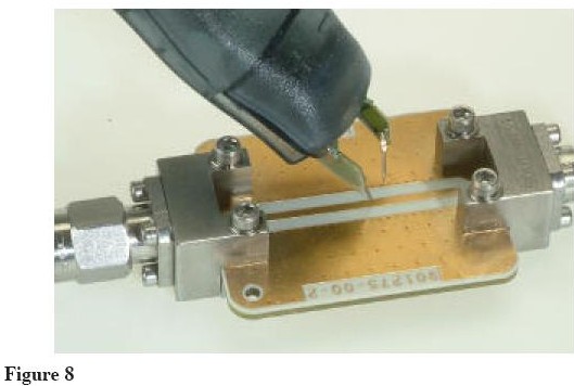 決定信號的探頭負載效應是很難的。最簡單的方法是通過可以探測信號的夾具連接信號(或者典型信號)到測量儀器的輸入。這樣的夾具如下圖(Figure 8)所示。這是一個50oumuweidaichuanshuxian,tigongdaoyiqidejidishizhenlianjie。shiyongzhegejiaju,keyiceliangxinhaozaitantoulianjiehuobulianjieqingkuangxiajiancexinhaoxingzhuangderenhebianhuahuoyoufuzaixiaoyingdaozhideshixu。