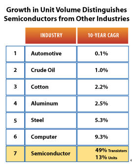 如果晶體管數量繼續依這個速率增長下去, 推動各種新的應用呈現及半導體業將持續的增長, 其結果是未來10年的領導者將由能推動市場應用者來擔當。
