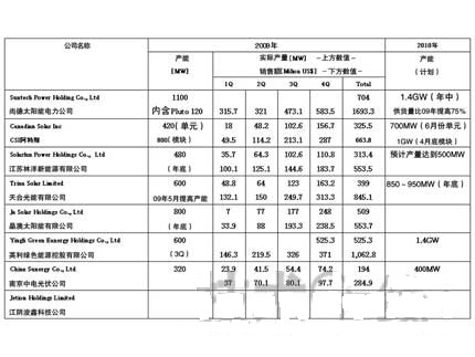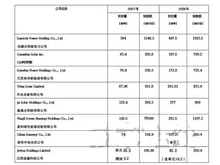 有人說,中國結晶型太陽能電池麵板(單元及模塊)的廠商已經超過了80家。其中8家已在國外的股票市場上市,並公開了營業數據等。由這些中國大型太陽能電池麵板廠商的產量、供貨量及銷售額走勢,即可得知上述全球經濟危機的影響,以及之後的快速複蘇情況。