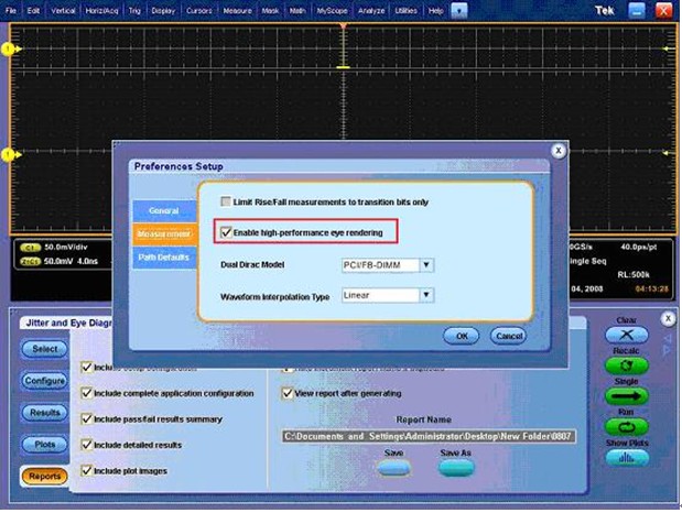 如果您在使用的是XXK的老軟件包RT-EYE,那麼您需要在C:\下的某個文件夾中找到某個tdsrt-eye文件進行手工修改,去掉這個限製,但在去掉之後如果您捕獲數據超過5Mpts會容易死機。 如果您是在用XXK示波器新的DPOJET軟件包,那麼需要在”Analyze”菜單下的“Perferences setup”子菜單的又一個子菜單“Measurement”的的某個子選項中找到設置。 不是XXK示波器發燒友似乎是找不到的嗬!