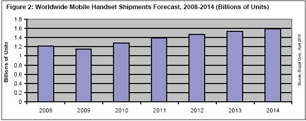 考慮到手機市場在2009年第四季度回升,以及歐洲、拉美和中東/非洲地區第四季度表現出色,可以說手機產業已經正式結束衰退。iSuppli公司認為,今年整體手機出貨量繼續增長——預計增長11.3%至13億部,進一步支持上述看法。