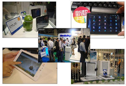 如ru下xia一yi組zu圖tu片pian,您nin能neng猜cai出chu這zhe是shi什shen麼me類lei型xing公gong司si的de展zhan台tai嗎ma?就jiu在zai不bu久jiu前qian舉ju行xing的de香xiang港gang電dian子zi展zhan上shang,瑞rui芯xin微wei一yi口kou氣qi推tui出chu和he展zhan示shi了le五wu十shi多duo款kuan移yi動dong互hu聯lian創chuang新xin應ying用yong方fang案an,涵han蓋gaiiMID(5英寸屏幕以內)、3G MID(內置3G SIM卡)、平板電腦(中國芯iPad)、智能手機(Android+3G+720P)、電子閱讀器(俗稱電子書)、無線數碼相框等一係列革新性終端產品。盡管這是一家芯片廠商,但它的展位上幾乎看不到芯片的影子。