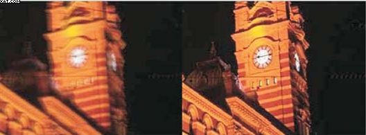 圖4左邊照片為沒有打開防手抖,右邊打開防手抖